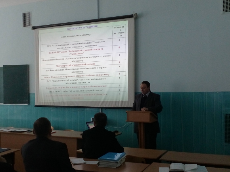 Заступник декана Володимир Завгородній доповів про стан профорієнтаційної роботи на факультеті, зокрема в коледжах та технікумах.