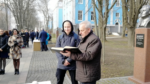 От і сьогодні студенти факультету захисту рослин, біотехнологій та екології усіх спеціальностей долучилися до загально університетського флешмобу – читання віршів Кобзаря. Читаючи Шевченка, ми згадуємо, що колись Господь подарував Україні таку видатну людину, згадуємо його творчість і особистість. Він є – і ми будемо”