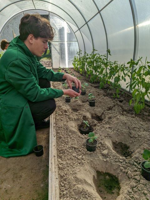 Варто наголосити, що вирощена екологічно чиста овочева продукція використовується для внутрішніх потреб закладу освіти, що сприяє формуванню культури сталого господарювання та принципів циркулярної економіки. Студенти на практиці долучаються до повного виробничого циклу — від передпосівної підготовки ґрунтових сумішей та вирощування розсадного матеріалу до збирання врожаю та його первинної обробки.