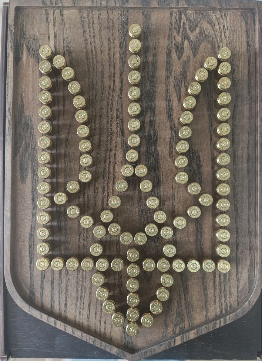 Герб України виготовлений із гільз від снарядів (експонат музею історії НУБіП України).