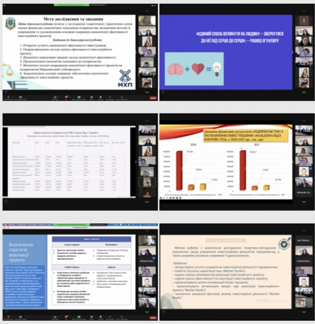 Всі представлені бакалаврські кваліфікаційні роботи були виконані з дотриманням вимог, містили конкретні розрахунки, пропозиції з удосконалення та ґрунтовні висновки. Актуальність, креативність і різноплановість обраних напрямів дослідження прослідковувалися в кожній роботі. Спектр обраних тем був достатньо широким: від розробки бізнес-плану ІТ-проекту, франчайзингу як інструменту розвитку інвестиційної діяльності компанії, особливостей інвестиційної політики в Україні, до управління командою інвестиційного проекту та ролі емоційного інтелекту в управлінні проектами.