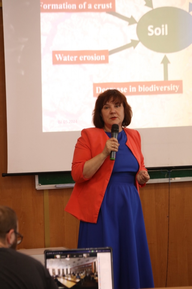 Вегар Мартінсен, професор, кафедра ґрунтознавства та води, факультет наук про навколишнє середовище та управління природними ресурсами, Норвезький університет наук про життя (NMBU), Норвегія представив наукові результати досліджень на тему «Екологічне землеробство з використанням біовугілля – 14 років досвіду польових випробуваннь в Африці». Доповідач поділився цінними досвідом впровадження сучасних біотехнологій в умовах посушливого клімату за вирощування різних груп сільськогосподарських культур.