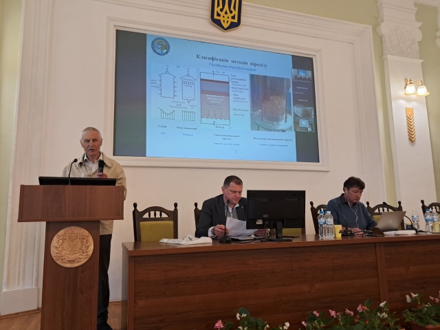 Володиимр Колос, ст.н.сп. відділу відновлюваних органічних енергоносіїв, кандидат технічних наук дав оцінку ефективності виробництва біовугілля методом окиснювального піролізу, учасникам конференції надзвичайно цікавою була інформація стосовно підбору найбільш ефективних умов промислового виробництва біочару.
