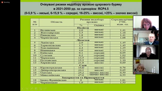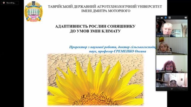 На сьогоднішній день піднімається актуальне питання до умов змін клімату та впливу його на продуктивність с.-г. культур. Зацікавила аудиторію інформація Михайла Федорчука, доктора с.-г. наук, професора Миколаївського національного аграрного університету та Оксани Єременко, доктора с.-г. наук, професора Таврійського державного агротехнологічного університету ім. Дмитра Моторного які виступили на конференції зі своїми доповідями на теми: «Вплив змін клімату на технології та продуктивність с.-г. культур», «Адаптивність рослин соняшнику до умов змін клімату».