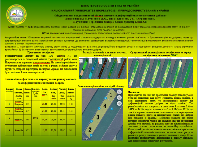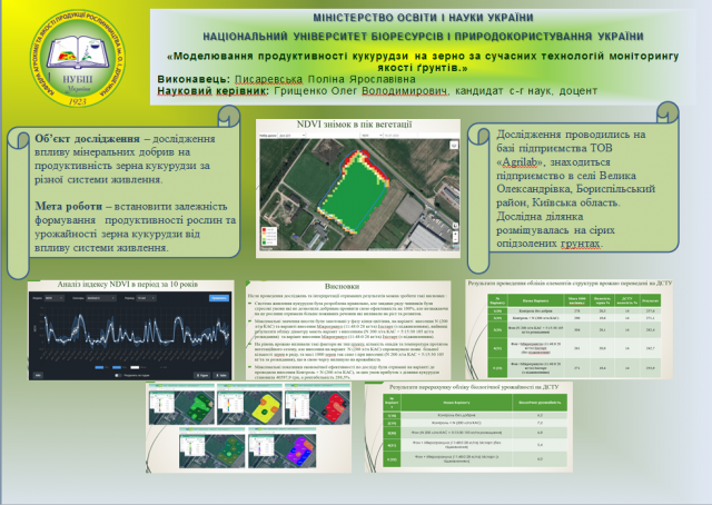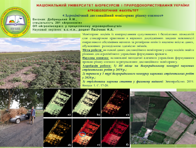 Роботи за ОПП «Агрохімія і ґрунтознавство» були присвячені актуальним темам оптимізації живлення рослин, раціональному удобренню культур для конкретного господарства, формуванню стресостійкості рослин, дослідженню дії нових добрив та іншому. За ОПП «Агрохімсервіс у прецизійному агровиробництві» студенти представили власні напрацювання у різних напрямках прецизійного агровиробництва, де для вирішення питань оптимізації живлення й агрохімсервісу рослинництва використовуються системи дистанційного моніторингу, диференційованого внесення добрив, різноділяночного обстеження ґрунтового покриву.