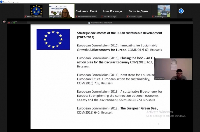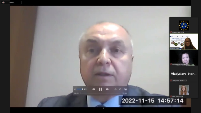 Професор Ігор Якименко, д.біол.н., завідувач кафедри екологічної безпеки та охорони праці, Національний університет харчових технологій, координатор проєктів Жана Моне JM ECO та EUforUA, доповів про застосування стратегії сталого розвитку для підходу Єдине Здоров’я.