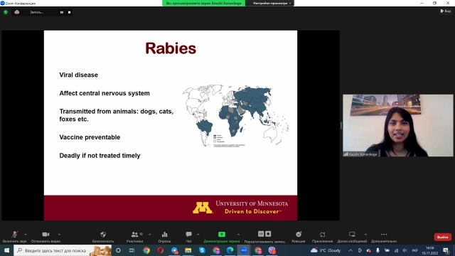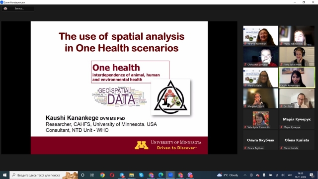 Яким чином використовується просторовий аналізу в сценаріях One Health на прикладі вивчення зоонозів розповіла учасникам заходу науковий співробітник Центру здоров’я тварин і безпеки харчових продуктів, Університет Міннесоти Кауші Кананкеге.