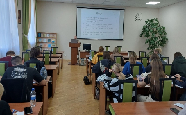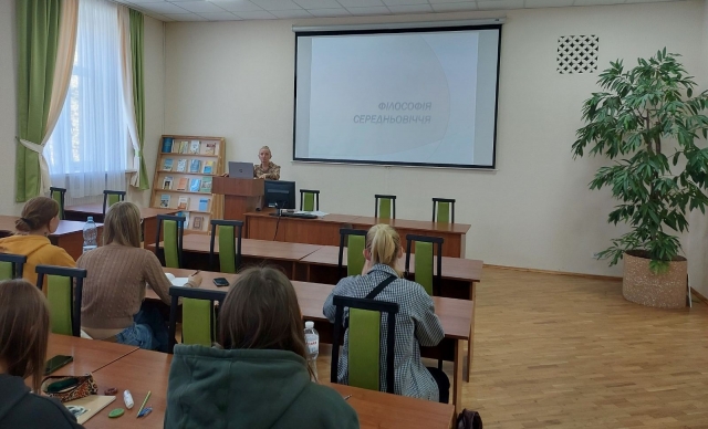 19 вересня 2024 року відбулася відкрита лекція з філософії завідувачки кафедри, доцента кафедри філософії та міжнародної комунікації Валентини Культенко, яку вона провела для першокурсників спеціальности «Професійна освіта» гуманітарно-педагогічного факультету НУБіП України. Лекція була присвячена філософії Середньовіччя та особливостям християнського способу філософствування, властивим для середньовічної доби.
