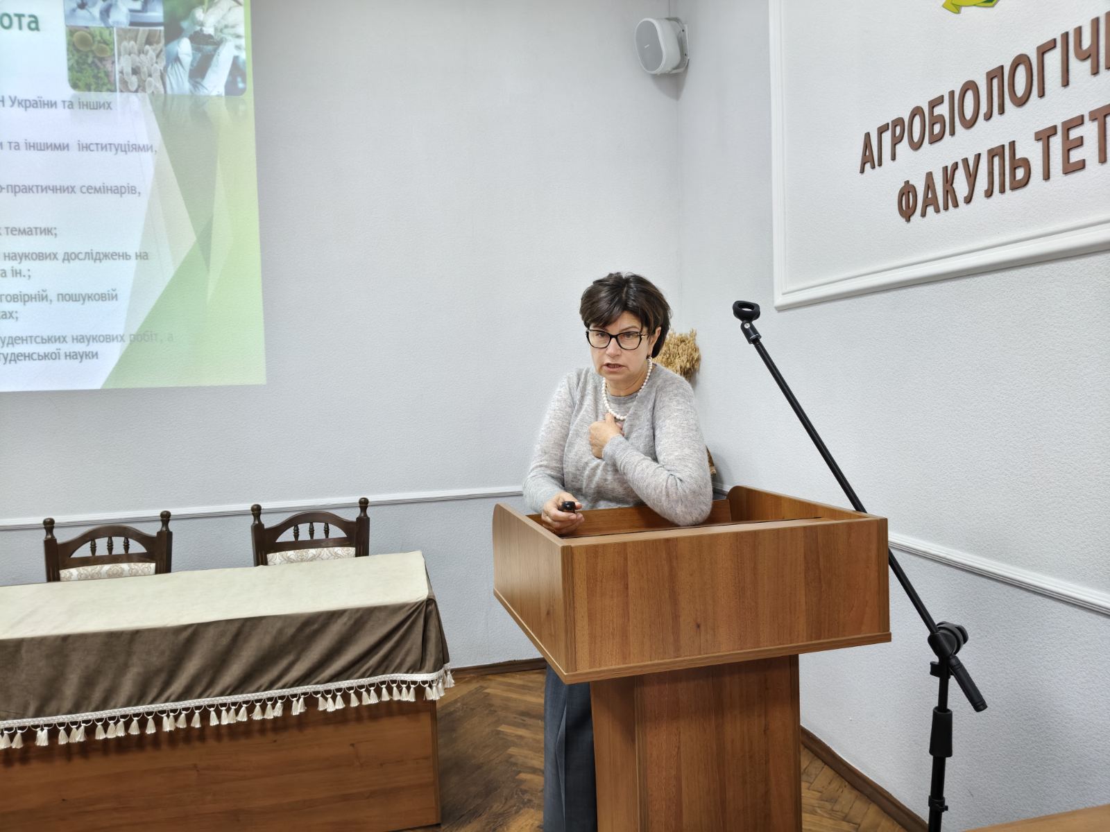 Доповідач охарактеризував роботу щодо участі співробітників у міжнародних стажуваннях та спільних з бізнесовими структурами круглих столах. До уваги присутніх була доведена інформація про посилення роботи у міжнародних проектах та публікаційної активності. Також, Віталій Коваленко привітав студентів Агробіологічного факультету з призовими місцями у спортивних змаганнях і конкурсах.