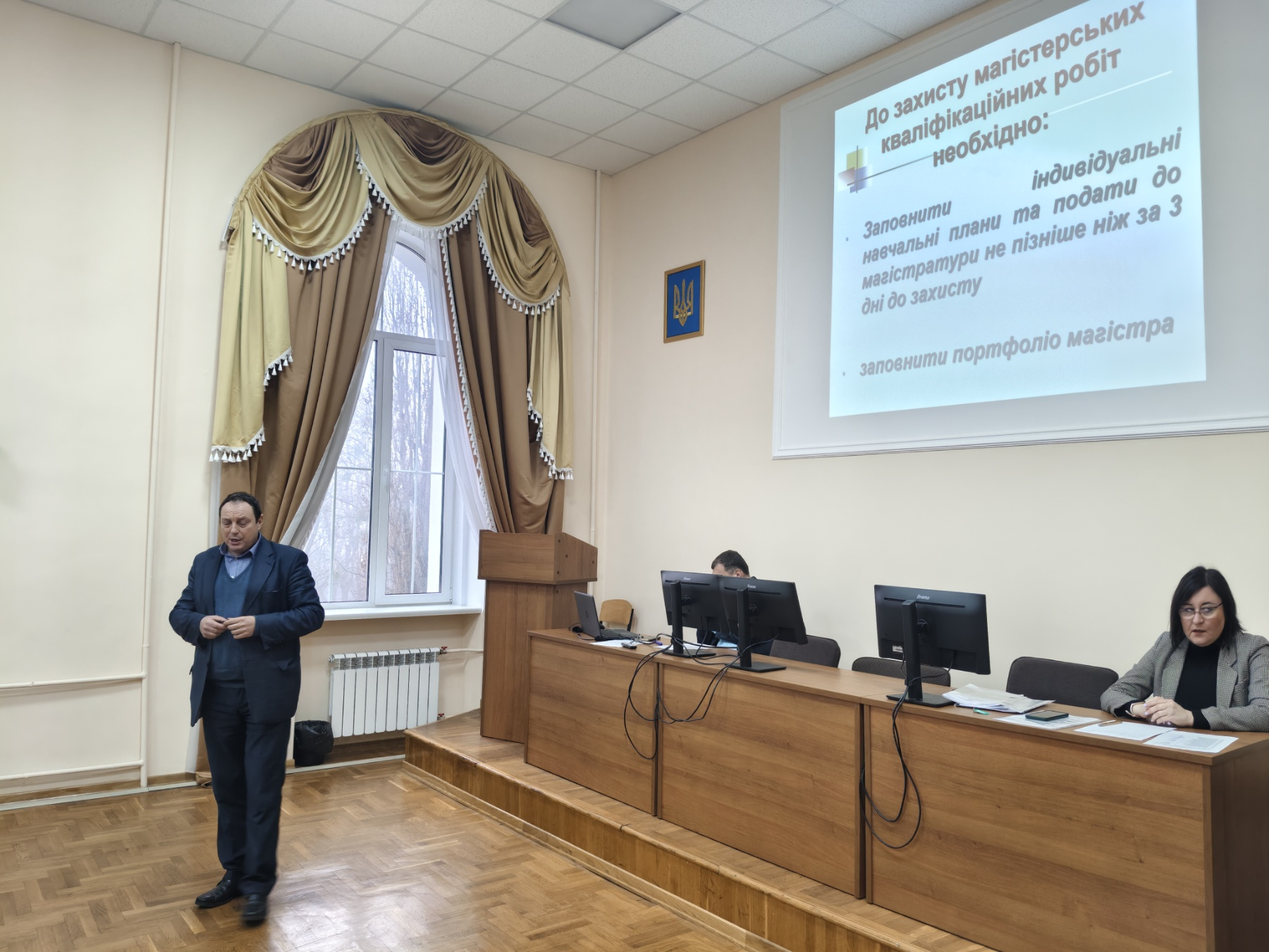 Заступник декана Володимир Завгородній надав інформацію, про підготовку до зимової екзаменаційної сесії студентів денної форми навчання та державної атестації випускників ОС «Магістр». До відома присутніх доповідач представив вимоги до захисту магістерських кваліфікаційних робіт та склад роботи ЕК. Окрема увага була приділена під час проведення екзаменаційної сесії дотриманню оновленого положення про екзамени і заліки, а також своєчасне ліквідування заборгованостей студентами факультету.