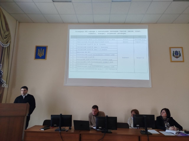 До уваги присутніх була доведена інформація кафедр ґрунтознавства та охорони ґрунтів ім. проф. М.К. Шикули та агрохімії та якості продукції рослинництва ім. О.І. Душечкіна про пророблену роботу та плани щодо профорієнтаційної діяльності. Завідувач Ростислав Богданович та асистент Тимур Панчук проінформували присутніх про кількість договорів про співпрацю з навчальними закладами, участь НПП у заходах, що проводяться у школах і ліцеях, а також про кількість абітурієнтів залучених на підготовчі курси і олімпіаду, підсумки проведення Дня відкритих дверей та популяризацію інформації у соціальних мережах.