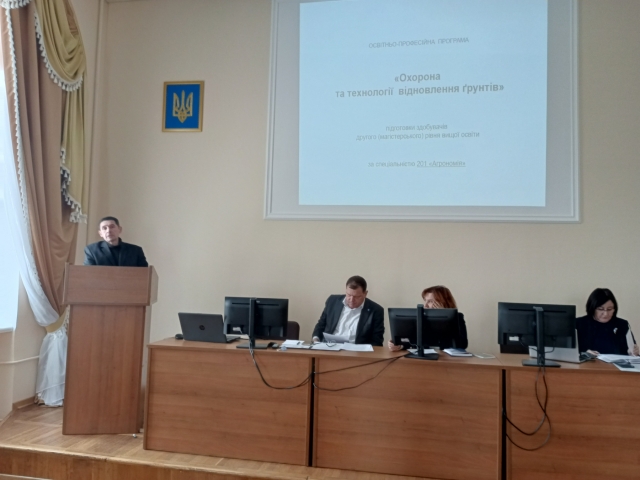 Завідувач кафедри грунтознавства та охорони ґрунтів ім. проф. М.К. Шикули Ростислав Богданович проінформував присутніх про початок розробки і затвердження ОПП «Охорона та технології відновлення ґрунтів» ОС Магістр, спеціальність 201 «Агрономія». Члени вченої ради і академік НААН Сергій Булигін підтримав ініціативу, відмітив що в нинішніх умовах в Україні існує велика потреба у фахівцях з охорони і відновлення ґрунтів, особливо актуальним є повоєнне відновлення грантів, саме тому кафедра звертає увагу на потребу в таких фахівцях, особливо в післявоєнний період.