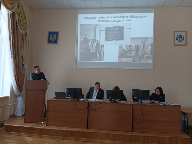 Завідувач кафедри генетики, селекції і насінництва ім. проф. М.О. Зеленського Олександр Макарчук ознайомив присутніх із профорієнтаційною роботою цого підрозділу у школах, технікумах, озвучив кількість підписання договір. Співпраця із Малою академією наук де діє секція «Юний селекціонер» і оцінка на конкурсі претендентів, участь НПП кафедри у днях відкритих дверей.