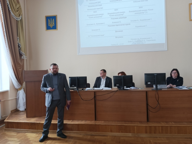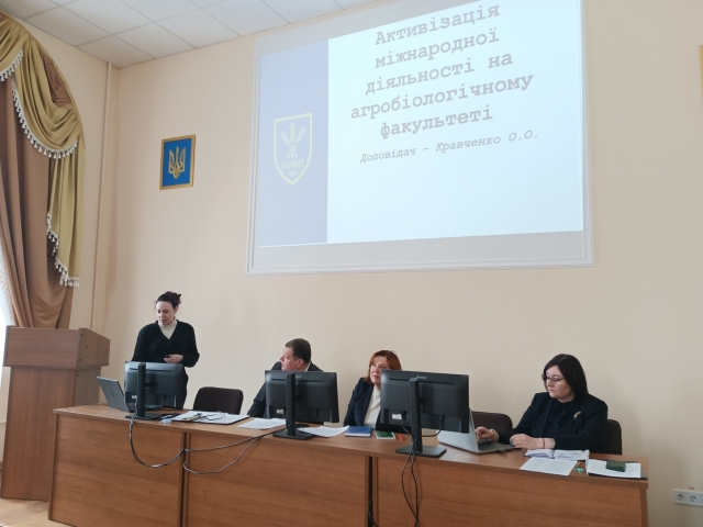 Декан Агробіологічного факультету Віталій Коваленко розпочав засідання вченої ради. Під час доповіді акцентував увагу на публікаційній активності, подачі наукових проектів за результатами роботи 4–х проектів МОН України, 7 проектів Erasmus+ за напрямом Жан Моне, оновлення електронних курсів та в цілому дисципліні проведення освітнього процесу.