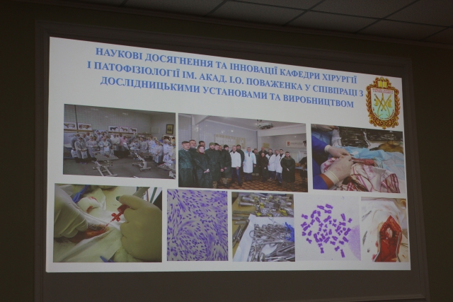 Зупинився окремо на діяльності ННЛ «Банк крові тварин», відобразив тісну співпрацю кафедри з виробництвом щодо проведення спільних наукових досліджень з доклінічних випробувань біоімплантів, електрозварювання біологічних тканин; проведенні семінарів з майстер-класами для практикуючих лікарів ветеринарної медицини: «Трансфузіологія та анестезіологія від А до Я», «Стан і перспективи впровадження методів клітинних технологій у ветеринарній медицині», «Тактичний курс до ветеринарної медицини службових собак силових структур України», присвячений 125-річчю НУБіП України та ін.