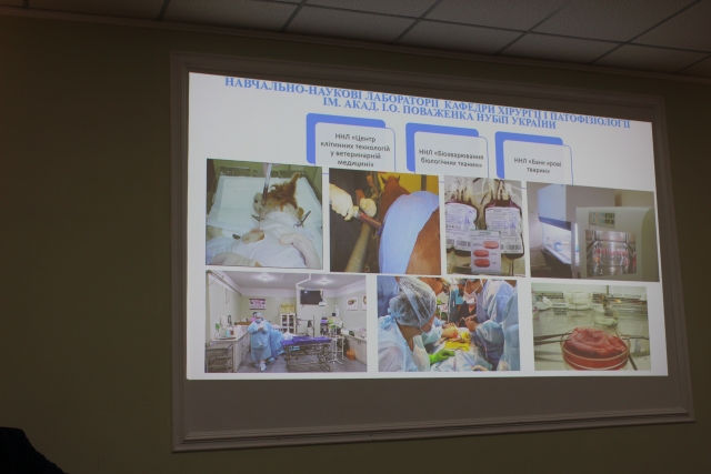Завідувач кафедри хірургії і патофізіології ім. акад. І.О. Поваженка Микола Малюк ознайомив учасників засідання з науковими досягненнями та інноваціями кафедри у співпраці з дослідницькими установами та виробництвом. Зокрема, діяльність ННЛ «Центр клітинних технологій у ветеринарній медицині» направлена на використання РRP і МСКЖТ за патології апарату руху у тварин.