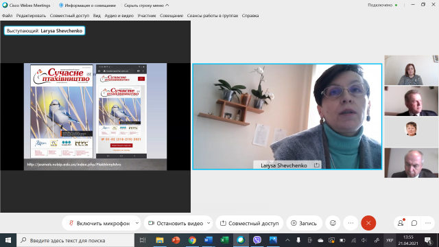 Як зазначила професор Лариса Шевченко, журнал «Сучасне птахівництво» в якому висвітлюються результати наукових досліджень, що мають теоретичне і практичне значення, актуальні для сільського господарства і ветеринарії, має вже тривалу історію і публікується з 2002 року. До складу редакційної колегії журналу долучений 31 науковець з різних навчально-наукових закладів України, Росії, Польщі та Болгарії, які редагують статті українською, російською та англійською мовами. За 2020 р. вийшли в світ 6 випусків журналу. Також професор Лариса Шевченко наголосила на основних завданнях на 2021 р.: збільшенні кількості фахових статей англійською мовою; підтримці партнерських зв'язків з Асоціацією голубівників України, асоціаціями «Союз птахівників України» і «Союз кормовиків України» та ГС «Міжрегіональний Союз птахівників та кормовиробників України»; участь у якості медіа-партера проведення заходів, організованих партнерами журналу; участь в аграрних виставках, форумах, семінарах, конференціях на державному та міжнародному рівнях; збільшенні друкованого обсягу журналу.