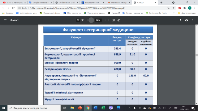Сьогодні бюджетне фінансування наукових робіт з 8 кафедр факультету ветеринарної медицини мають 4, а позабюджетне надходження коштів до спецфонду забезпечили поки що 3 кафедри.