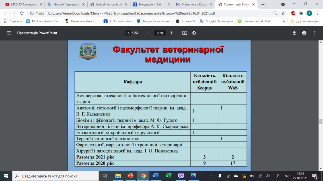 Також професор Дмитро Засєкін повідомив про публікаційну активність НПП факультету станом на квітень 2021 року.