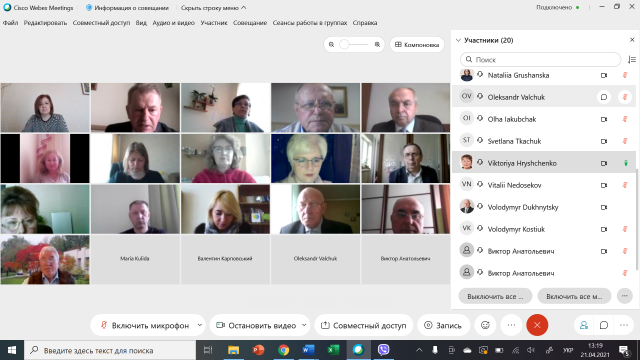 Онлайн-засідання науково-технічної ради НДІ здоров’я тварин відбулося 21 квітня 2021 р. У засіданні прийняли участь 17 членів науково-технічної ради НДІ здоров’я тварин, завідувачі кафедр факультету ветеринарної медицини та науково-педагогічні працівники. Черговий раз головував на засіданні професор Дмитро Засєкін.