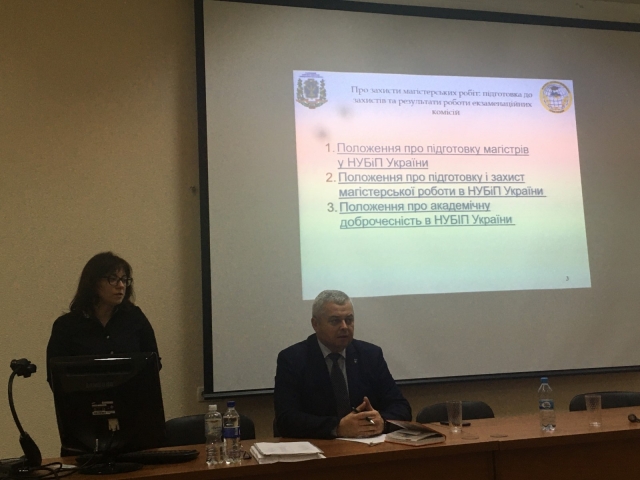 Заступник декана Лариса Карпенко доповіла про результати перевірки магістерських робіт на плагіат, відзначивши недоліки в роботі керівників та студентів. Голови екзаменаційних комісій та завідувачі кафедр прозвітувати про результати захистів магістерських робіт.