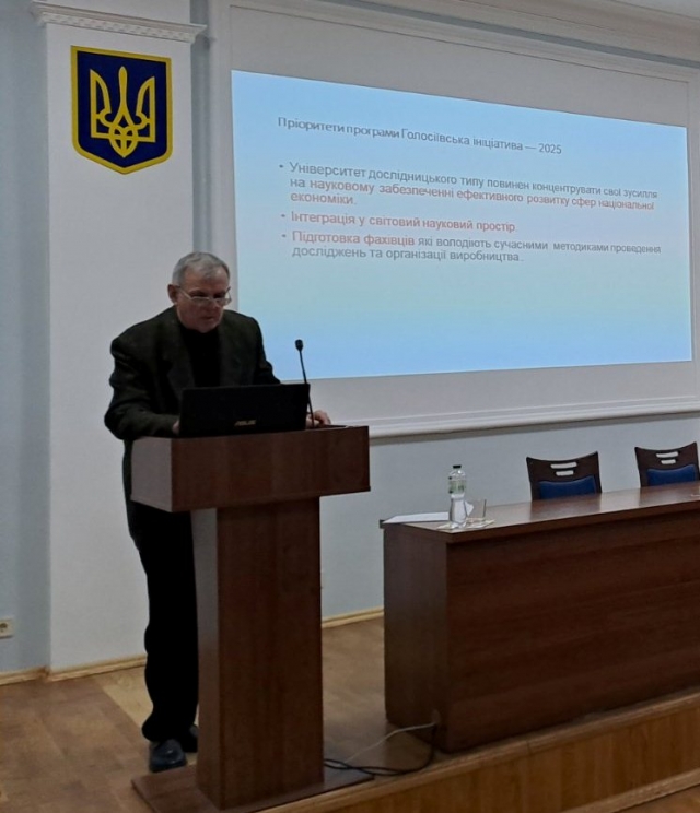 Далі перейшли до розгляду наступного питання порядку денного, а саме план та перспективи розвитку кафедри генетики, розведення та біотехнології тварин в руслі виконання програми ‟Голосіївська ініціатива – 2025” представив її завідувач Сергій Рубан.