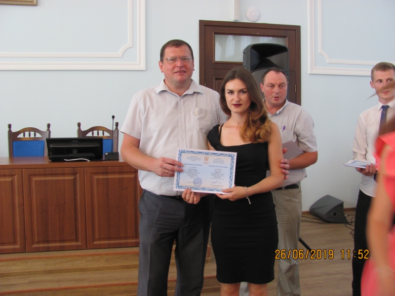 До випускників звернулася декан агробіологічного факультету Оксана Тонха, яка привітала їх із завершенням навчання, побажала реалізації творчих задумів й запросила продовжити навчання в магістратурі. Після цього вона зачитала наказ №519 від 28 травня 2019 р. «Про закінчення навчання». Дипломи випускникам вручали декан, заступники декана та завідувачі випускових кафедр факультету.