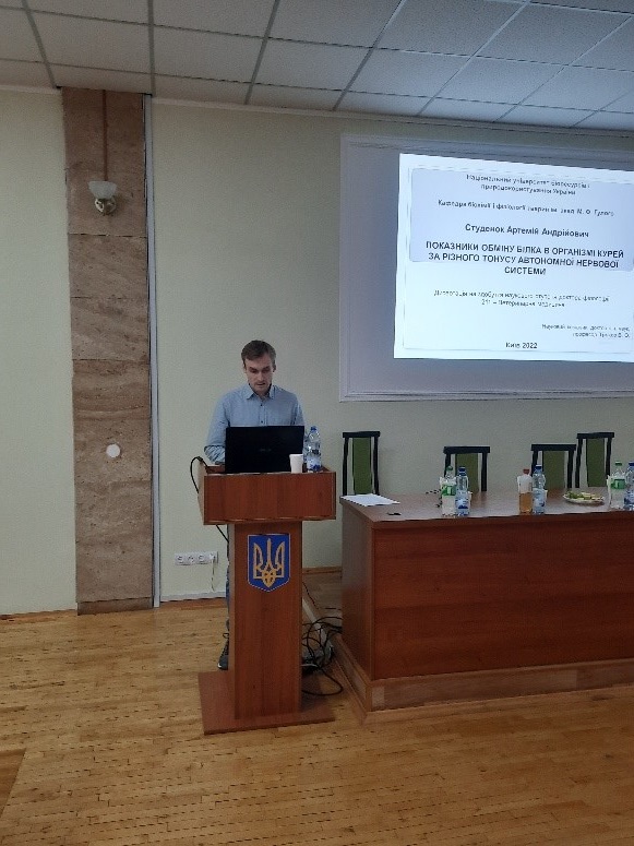 ім. акад. М.Ф. Гулого Студенок Артемія на тему: «Показники обміну білка в організмі курей за різного тонусу автономної нервової системи», науковий керівник докт. сіль-г. н., проф. Вітор Трокоз, експерти докт. вет. н., доц. Тетяна Мазуркевич, докт. вет. н. Руслана Постой.