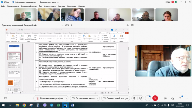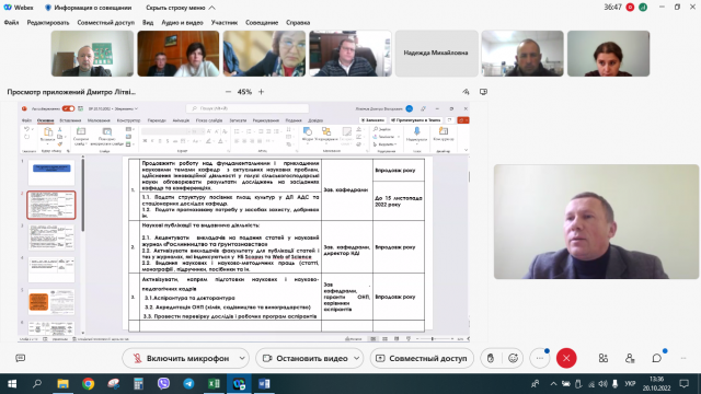 Директор НДІ рослинництва та ґрунтознавства Дмитро Літвінов доповів про планування науково-дослідної роботи. Зокрема доповідач наголосив до 15 листопада подати стуктуру посівних площ у ДП АДС, потребу в добривах, посівному матеріалі. Закцентував увагу викладачів на публікаціях в журналі «Рослинництво та грунтознавство», проведенні науково-технічних заходів в онлайн форматі, підготовці та подачі проєктів за приорітетними напрямками досліджень для участі у конкурсі МОН та НДФ, активізації НДР студентів, співпраці з бізнесом, активізації міжнародної наукової співпраці.