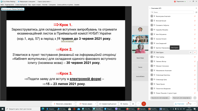 На агробіологічному факультеті ця подія зібрала on line понад 60 учасників: студентів 4 курсів, батьків та усіх зацікавлених у вступі на магістерські програми: