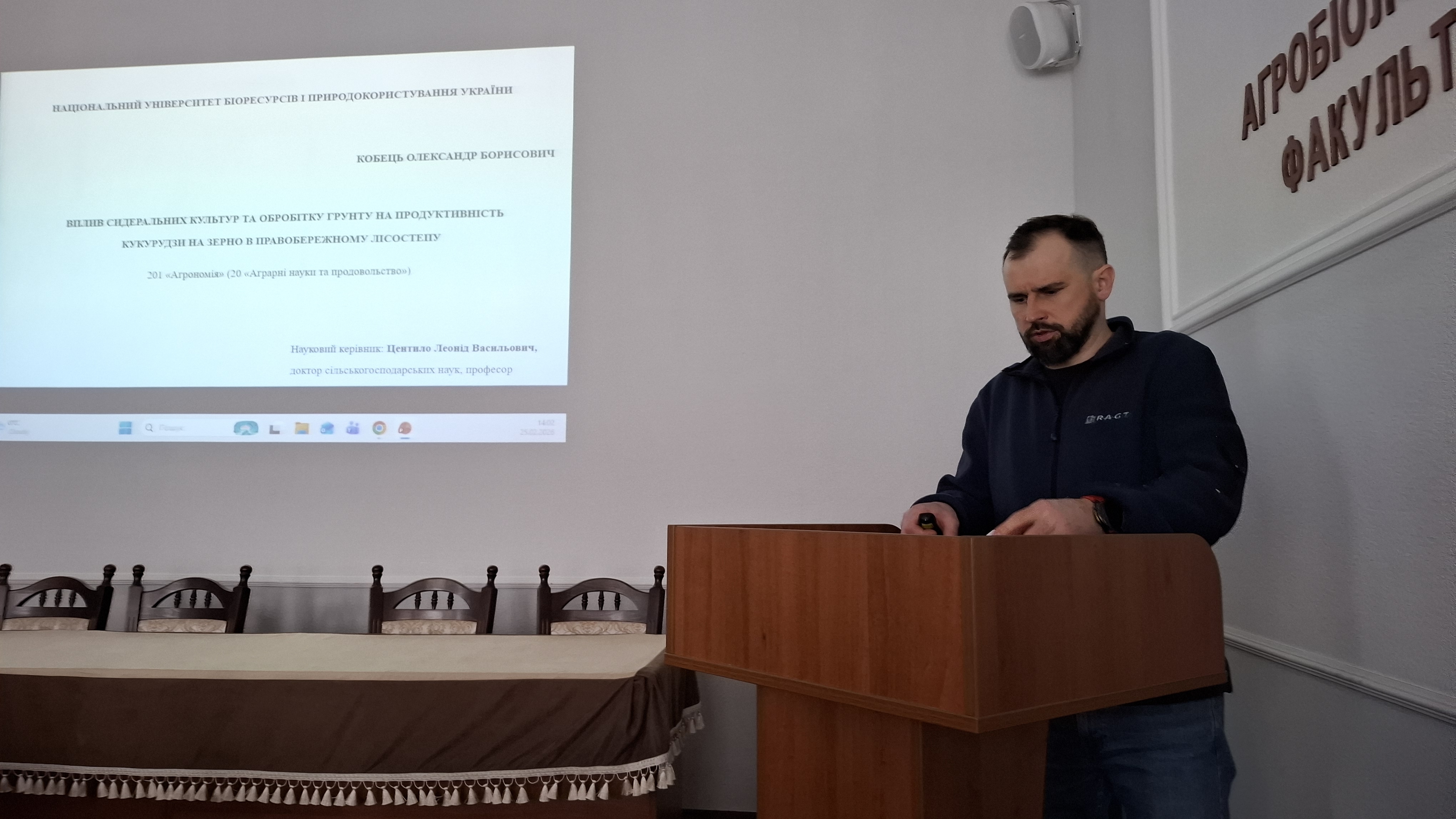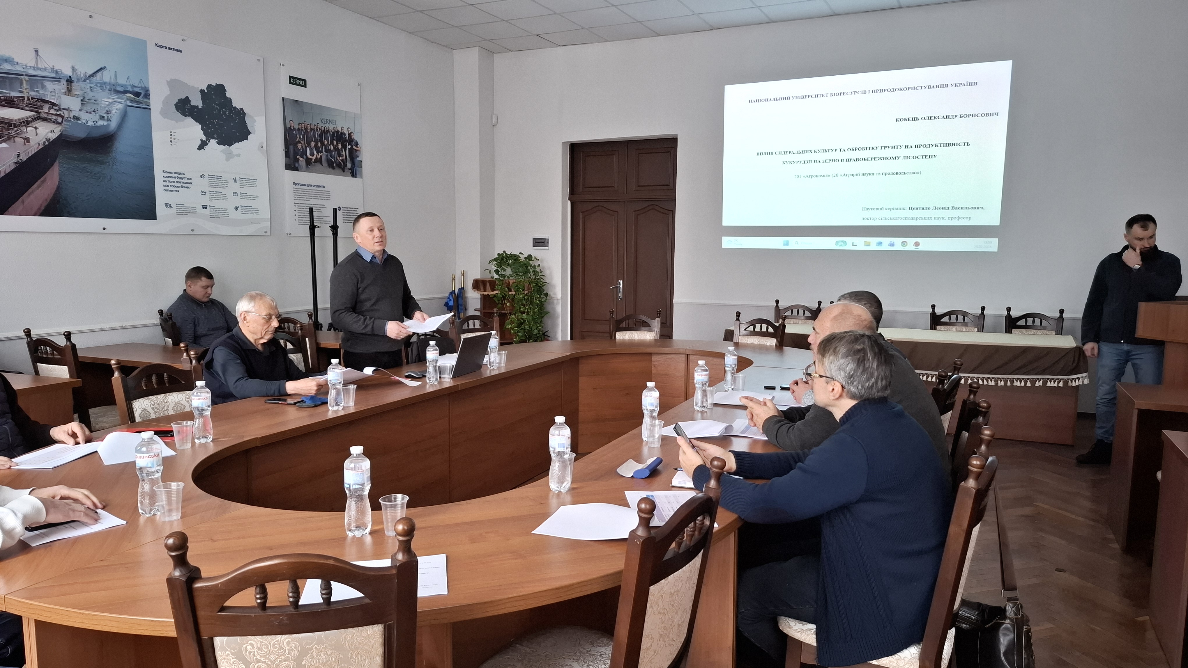 25.02.2026 р. о 14.00 відбувся фаховий семінар кафедри землеробства та гербології Національного університету біоресурсів і природокористування України для проведення попередньої експертизи дисертації здобувача ступеня доктора філософії КОБЦЯ Олександра Борисовича на тему: «Вплив сидеральних культур та обробітку ґрунту на продуктивність кукурудзи на зерно в Правобережному Лісостеп» за спеціальністю 201 Агрономія галузі знань 20 Аграрні науки та продовольство