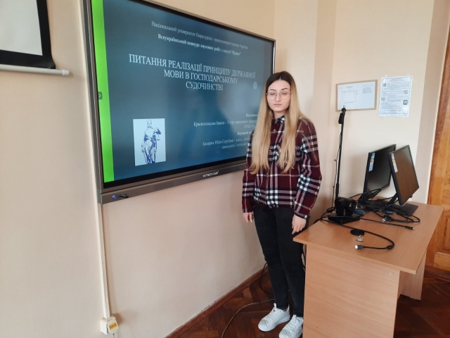 1) студентку 3 курсу Красносільську Іванну Петрівну з науковою роботою на тему: «Питання реалізації принципу державної мови в господарському судочинстві» (науковий керівник: доц. Канарик Ю.С.) 90 балів;