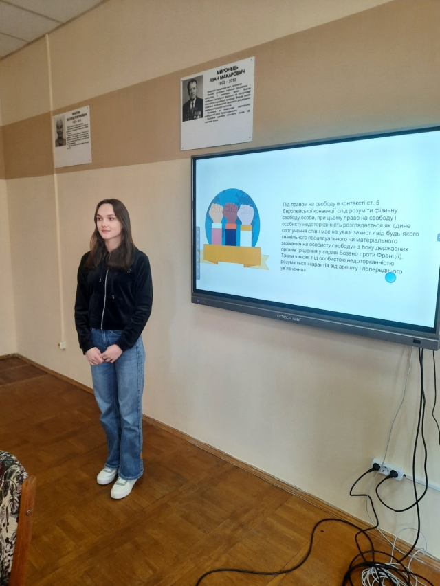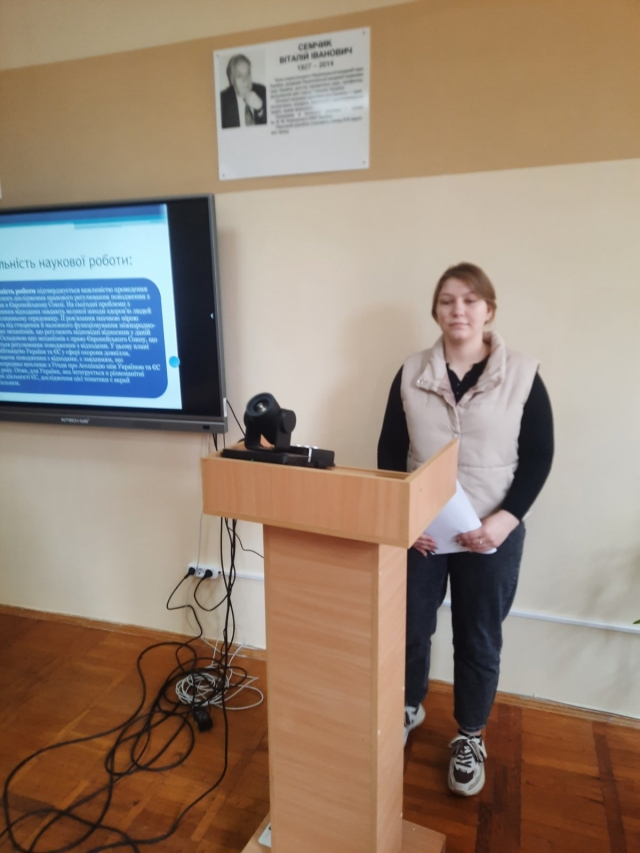 5) студентку 2 курсу Кучер Анастасію Олегівну з науковою роботою на тему: «Проблемні питання насильства над населенням у районні воєнних дій» (науковий керівник: доц. Ковальова С.С.) 87 балів;