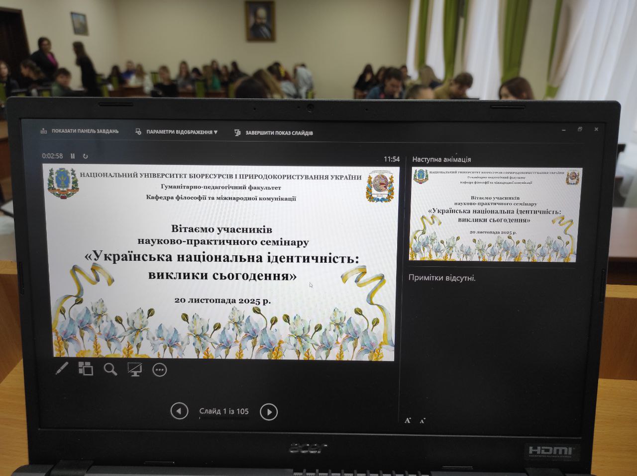 20 листопада 2025 року в НУБіП України відбувся науково-практичний семінар «Українська національна ідентичність: виклики сьогодення» подія, що об’єднала студентів, аспірантів, викладачів і молодих науковців навколо однієї з ключових тем сучасного гуманітарного дискурсу.