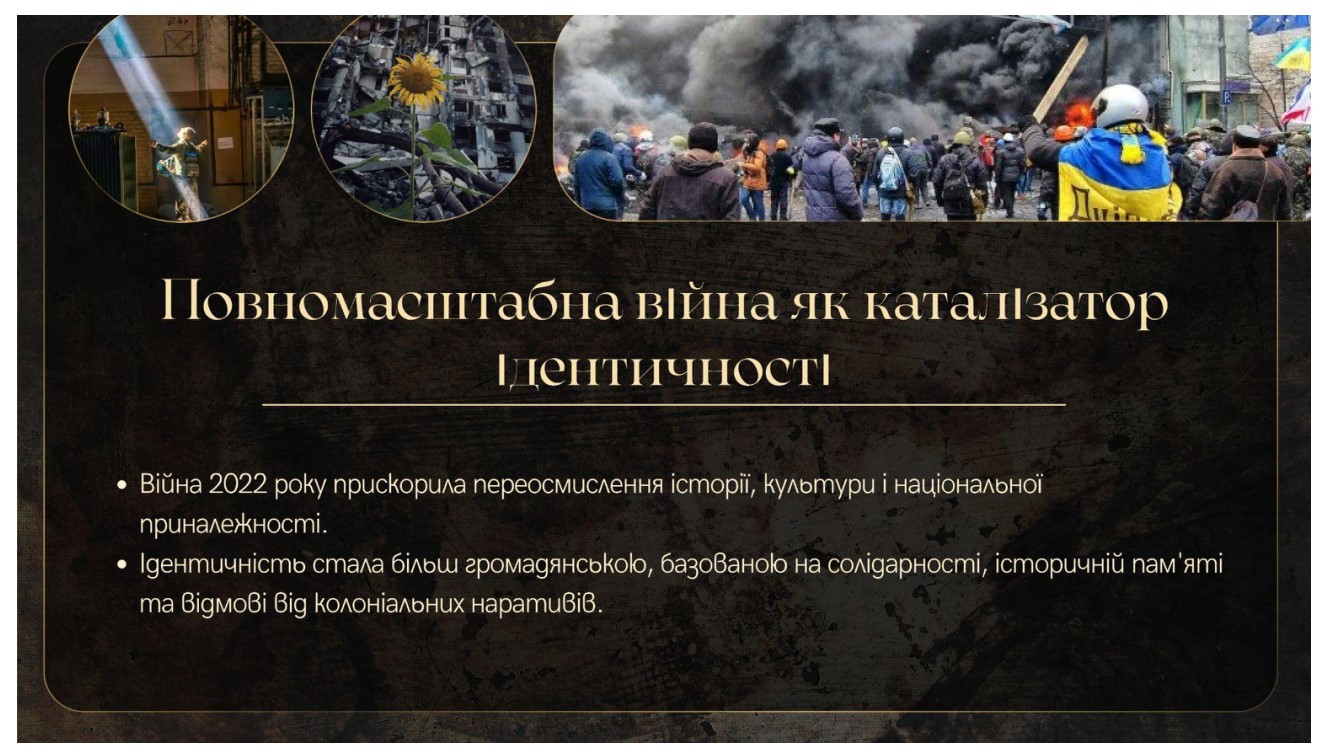 Захід став майданчиком, де академічна традиція зустрілася з новими підходами до аналізу соціокультурних процесів, а молодіжний дослідницький погляд вдало поєднався з глибиною професійних наукових розвідок. Науково-практичний семінар створив простір для змістовного діалогу про те, як формується українська ідентичність у контексті воєнних подій, євроінтеграційних прагнень, інтенсивних трансформацій суспільства та оновлення політичних і культурних смислів. У фокусі обговорень були питання пам’яті й спадкоємності, ролі державної політики, європейських ціннісних орієнтирів та впливу інформаційного середовища на національну свідомість.