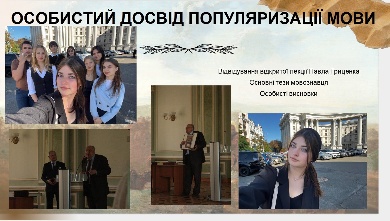 САВІЦЬКА Анна, студентка 1 курсу гуманітарно-педагогічного факультету спеціальності «Міжнародні відносини», представила доповідь «Роль мови у збереженні української національної ідентичності». У виступі було зосереджено увагу на головних тенденціях трансформації української ідентичності в умовах війни, глобалізації та соціокультурних змін.