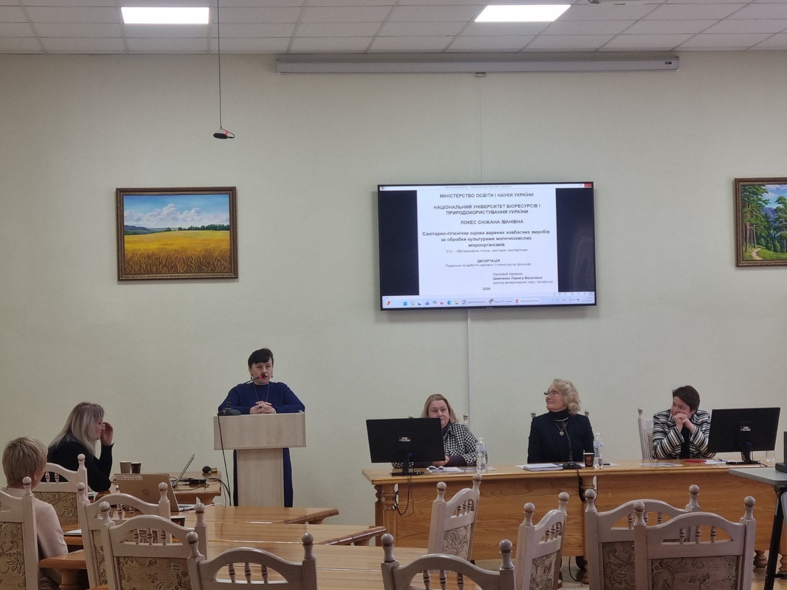 21 січня 2026 року на засіданні спеціалізованої вченої ради РСВР 173 відбувся захист здобувачки освітньо-наукової програми «Ветеринарна гігієна, санітарія і експертиза» ступеня доктора філософії Сніжани Локес. Дисертаційна робота виконана під керівництвом Лариси Шевченко, доктора ветеринарних наук, професора, професора кафедри гігієни тварин і харчових продуктів імені професора ім. проф. А.К.Скороходька.