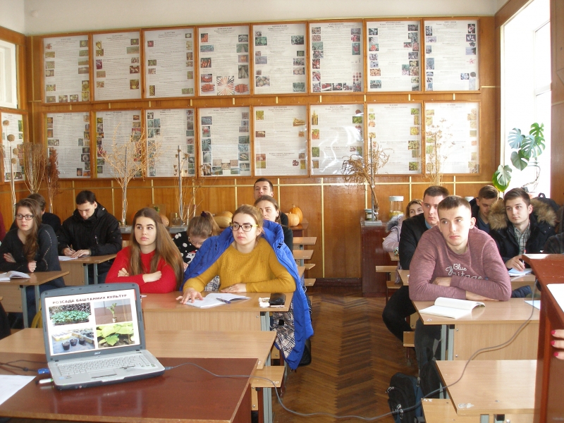 20.02.2017 р. в аудиторії 42, 7-го навчального корпусу відбулася відкрита лекція доцента кафедри овочівництва Бобось Ірини Макарівни з дисципліни «Овочівництво відкритого ґрунту». Лекція прочитана для студентів IV курсу 5 групи агробіологічного факультету на тему: «Значення та сучасні технології вирощування баштанних культур».