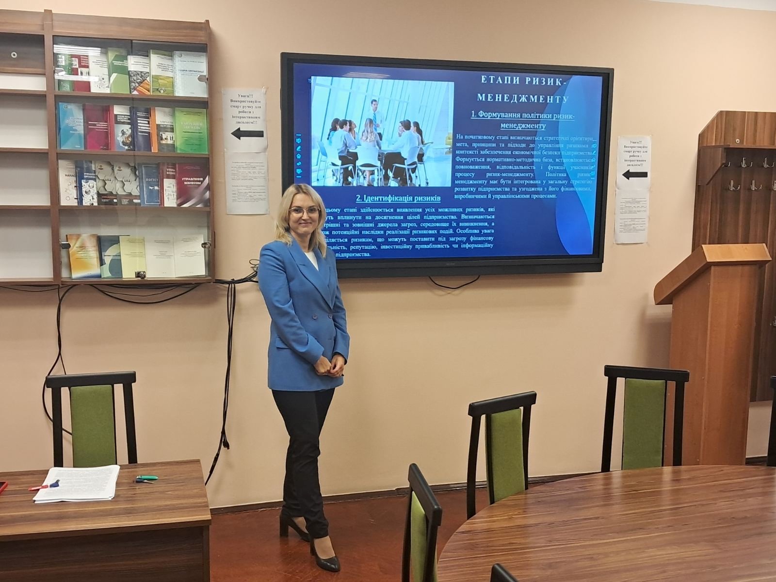 Окрему увагу приділено превентивним заходам щодо мінімізації ризиків. Здобувачі вищої освіти дізналися, як системи раннього попередження, регулярний моніторинг ключових показників та оптимізація внутрішніх процесів дозволяють передбачати загрози й уникати негативних наслідків. Лектор підкреслила, що ефективний менеджер повинен поєднувати аналітичне мислення з проактивним плануванням для мінімізації фінансових, операційних і стратегічних ризиків.