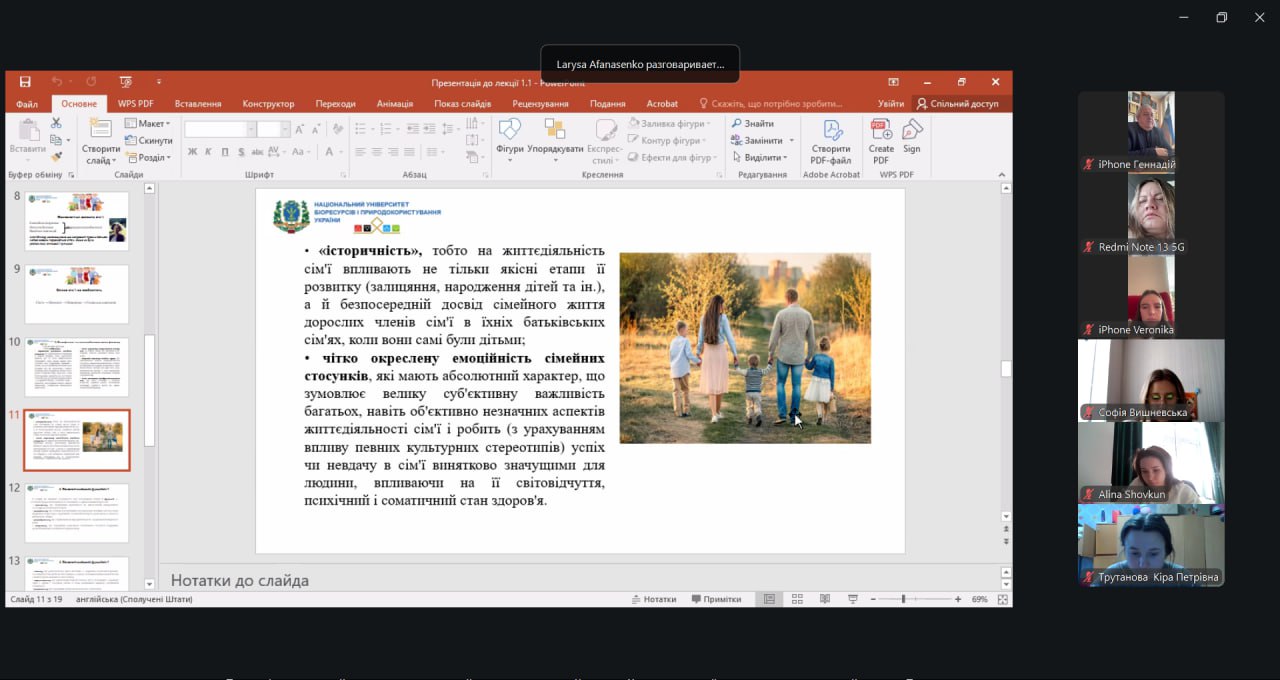 Захід об’єднав здобувачів освіти, викладачів та всіх зацікавлених проблематикою сучасної сім’ї як однієї з ключових соціальних інституцій суспільства. У ході лекції було розглянуто теоретичні та прикладні аспекти функціонування сім’ї, її роль у формуванні особистості, підтриманні психологічного благополуччя та забезпеченні міжпоколінної взаємодії.
