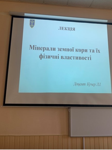 Лекція проходила в очному форматі з дисципліни ˮГеологія і геоморфологіяˮ та присвячена темі: ˮМінерали земної кори та їх фізичні властивостіˮ. Лекція проходила в лекційні аудиторії 6 корпусу НУБіП України.