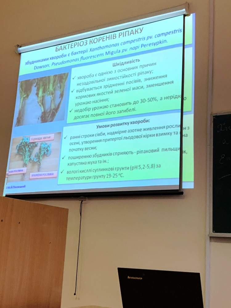 19 листопада 2019 року для студентів 4 курсу (1 група) та 3 курсу скороченого терміну навчання ОС «Бакалавр» спеціальності 202 - «Захист і карантин рослин» доцентом кафедри фітопатології Мирославом Піковським була проведена відкрита лекція на тему: «Система захисту ріпаку озимого від хвороб» (навчальна дисципліна «Сільськогосподарська фітопатологія»).