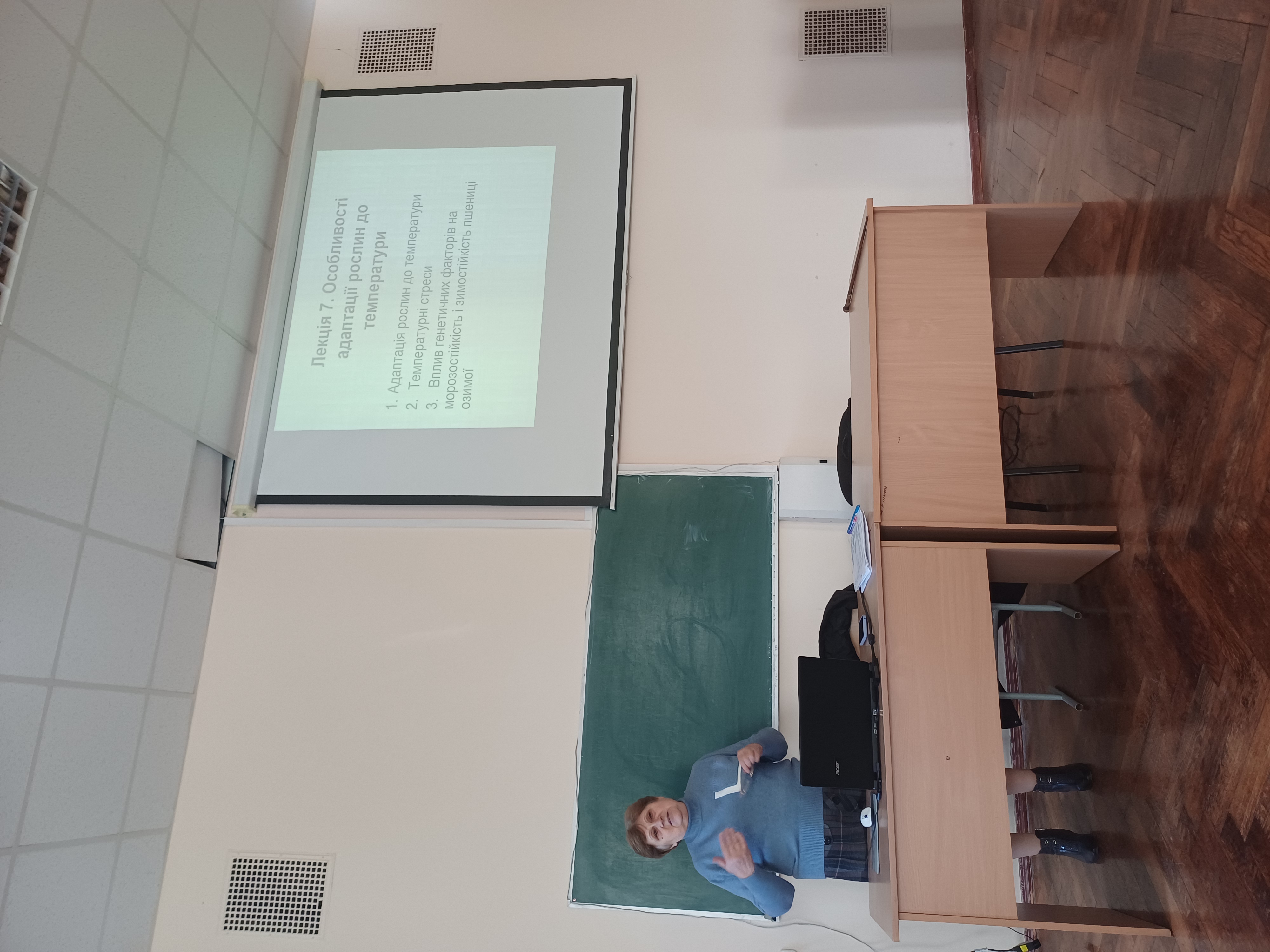 Під час лекції було висвітлено численні фактори довкілля, одним із яких є температура. Дана проблема має тісний зв’язок із потенційною продуктивністю рослин та фізіологічними обмеженнями їх пристосувальних можливостей до температурного стресу. Висвітлено механізми набуття сортами стійкості до низьких температур у осінньо-зимово-весняні періоди. Особливу увагу було приділено питанню морозостійкості сортів озимої пшениці.
