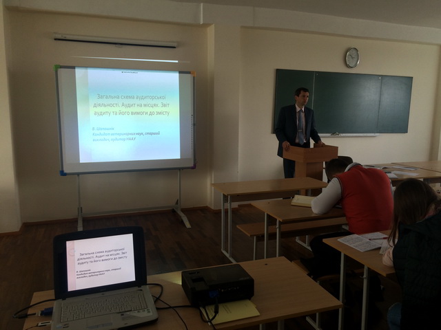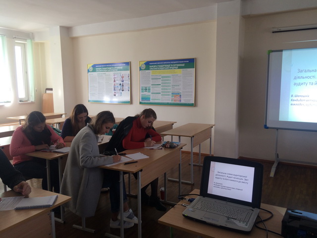 28.09.2016 р. проведено відкриту лекцію на тему: "Загальна схема аудиторської діяльності. Аудит на місцях. Звіт аудиту та його вимоги до змісту", ст.викладачем, канд.вет.наук Шапошніком Володимиром Миколайовичем.