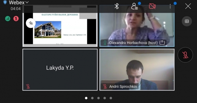 Лекція відбулась в дистанційному форматі на платформі Webex. Знайомлячи студентів з теоретичним матеріалом в першу чергу лектор відмітила позитивні властивості деревини, що сприяють її широкому застосуванню. Проте є важливий недолік – деревина руйнується під дією атмосферних і біологічних факторів навколишнього середовища. Загалом розглянуто негативну дію ультрафіолетового випромінювання на поверхню деревини та заходи захисту. Також наведено результати експлуатації виробів з деревини у середовищі з підвищеною вологою, конструктивні передумови будівництва надійного будинку, умови виникнення пожеж та рекомендації щодо можливостей ізолювання конструкцій з деревини.