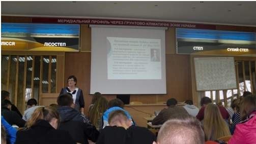 5 жовтня 2015 р. відбулася відкрита лекція завідувача кафедри загальної хімії – проф., д.х.н. Антрапцевої Н.М. на тему «Сучасні уявлення про будову атома» для першокурсників ННІ лісового і садово-паркового господарства (потік з 87 студентів). Студенти, викладачі кафедри, а також високоповажні запрошені, серед яких директор ННІ лісового і садово-паркового господарства проф. Лакида І. П., заступники директора – проф. Ковалевський С. Б. та доц. Бала О.П., заступник декана агробіологічного факультету Іванюк М.Ф., професор кафедри аналітичної і біонеорганічної хімії та якості води Максін В.І. та ін. відмітили високий науковий рівень володіння матеріалом, актуальність та сучасність змісту лекції, систематичність та логічну послідовність викладення матеріалу. За результатами оцінювання якості проведеного лекційного заняття викладачами та членами робочої групи лекція прочитала на 98 балів зі 100. Одноголосний висновок – лекція прочитана на високому рівні. Хорошої думки про лекцію й студенти. І хоча тема лекції, що розглядалася, одна з непростих теоретичних і дуже важливих для розуміння хімічних і природних явищ, студенти уважно слухали, конспектували, відповідали на питання лектора, одним словом, працювали на лекції. Крім високого рівня прочитаної лекції, студенти в анонімному анкетуванні відзначили доброзичливість лектора, повагу і такт по відношенню до студентів, хороший контакт з аудиторією. Середня сума балів за результатами студентського оцінювання якості проведеного заняття склала 49 балів із 50 можливих.