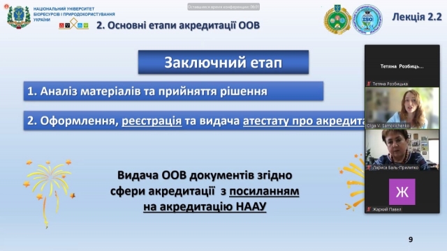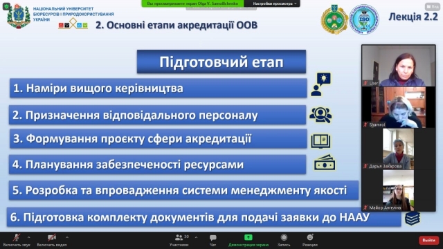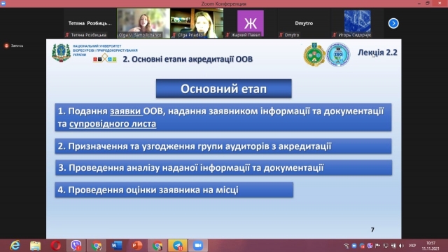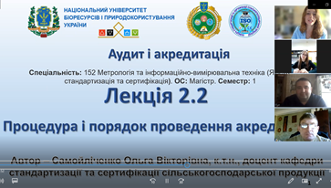 11 листопада 2021 року доцентом кафедри стандартизації та сертифікації с.-г. продукції, к.т.н. Ольгою Самойліченко було проведено відкрите лекційне заняття на тему «Процедура та порядок проведення акредитації» для студентів факультету харчових технологій та управління якістю АПК освітньої програми «Якість, стандартизація та сертифікація».