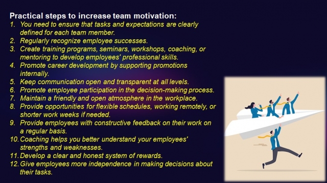 Не менш важливими питаннями дискусії стали детальний аналіз управління командою, а також роль мотивації як ключового аспекта ефективного лідерства – лідери, які вміють надихати своїх послідовників, здатні досягти великих результатів для себе та своїх команд.