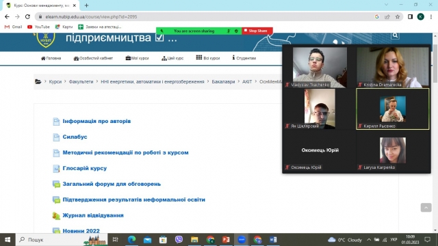 1 березня 2023 року к.е.н., доцент, доцент кафедри менеджменту ім. проф. Й. С. Завадського Кристина Павлівна Драмарецька прочитала відкриту лекцію з дисципліни «Основи підприємництва, менеджменту та маркетингу» для здобувачів першого (бакалаврського) рівня вищої освіти 4 курсу спеціальності 144 «Теплоенергетика» на тему «Комунікації в менеджменті. Управління групами, керівництво та лідерство».