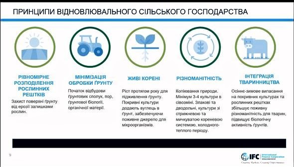 Володимир Нехай детально розповів про принципи відновлювального сільського господарства і виокремив такі його особливості як: рівномірне розподілення рослинних решток, мінімізація обробки ґрунту, живі корені, різноманітність та інтеграція тваринництва. Також він обґрунтував важливість дотримання сівозміни та використання покривних культур для досягнення кліматично-орієнтованого землеробства.
